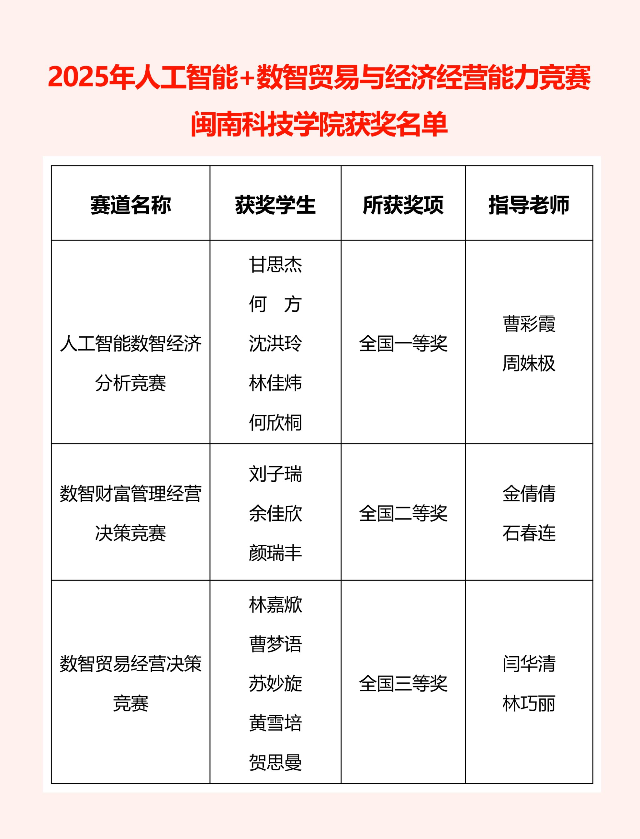 近日,由中国国际贸易学会主办的2025年人工智能+数智贸易与经济经营能力竞赛圆满落幕。我院3支参赛队伍分别获得全国一等奖、二等奖、三等奖的好成绩,充分彰显了我校在商科人才培养方面的扎实成效。