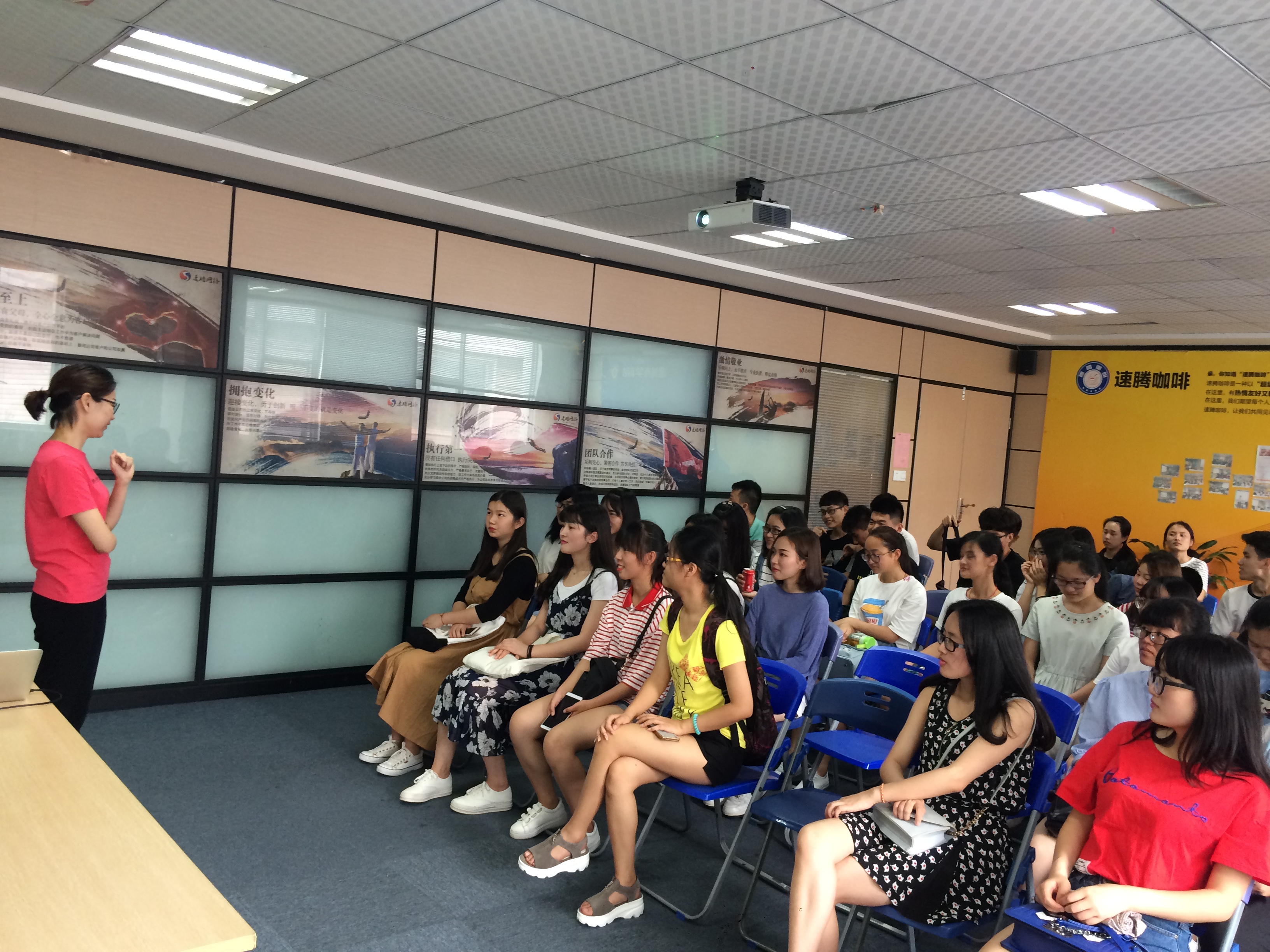 泉州市速腾网络科技有限公司人力资源经理郑锦丽经理热情接待了同学们,带领同学们参观了企业办公环境,并详细的介绍了速腾公司作为闽南地区最大的电子商务服务商,在阿里文化大背景下,企业的发展历程、服务理念及互联网时代的文化特色等内容。