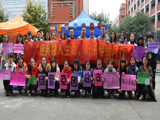 为了激发学生阅读的兴趣,引导学生从阅读走向悦读, 3月14日中午,我系团总支在美林校区食堂门口举办了以“经典融入生命,好书伴我同行”为主题的经济管理系首届书评比赛宣传会。本次活动面向全院师生。