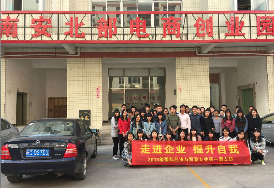 4月15日下午, 2013级国际经济与贸易专业1班同学在辅导员曾荣根的带领下,前往南安北部电商创业园开展以“走进企业,替身自我”为主题的团日活动。