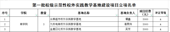 根据《304永利集团实践教学基地建设与管理办法》,经教务处组织开展第一批校级示范性校外实践教学基地建设项目申报工作审核,同意我院3个校外实践教学基地为校级示范性校外实践教学基地,并根据建设情况划拨项目经费,现将名单予以公布。