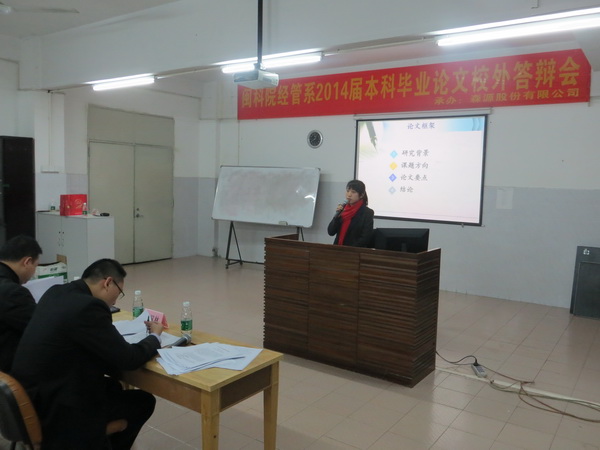 2014年元月,首届“森源班”交换学习学员在深圳森源基地参加校外毕业论文答辩会。本次校外毕业论文答辩是该批学员交换学习内容之一,也是学院与森源家具集团深度合作的成果之一。