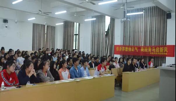 庄天怀书记结合自身工作经历为在场师生作了“不忘初心,不负青春”的专题讲座,讲座从提升三个方向、三个素质为主线,分别从思想道德素质、科学文化素质、身心健康素质,站起来能说、走出去能做、坐下来能写等方面与同学们分享,通过理论联系实际,辅以鲜活的案例剖析,以生动形象、通俗易懂的语言诠释出一名优秀团干部应具备的素质和能力,使同学们获益匪浅。